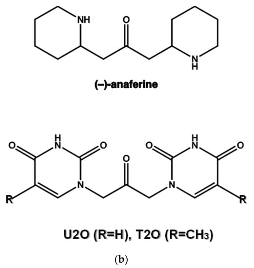 2.1. Synthesis of 1,3-Bis(1′-uracilyl)-2-propanone (U2O) and 1,3-Bis(1′-thyminyl)-2-propanone (T2O)