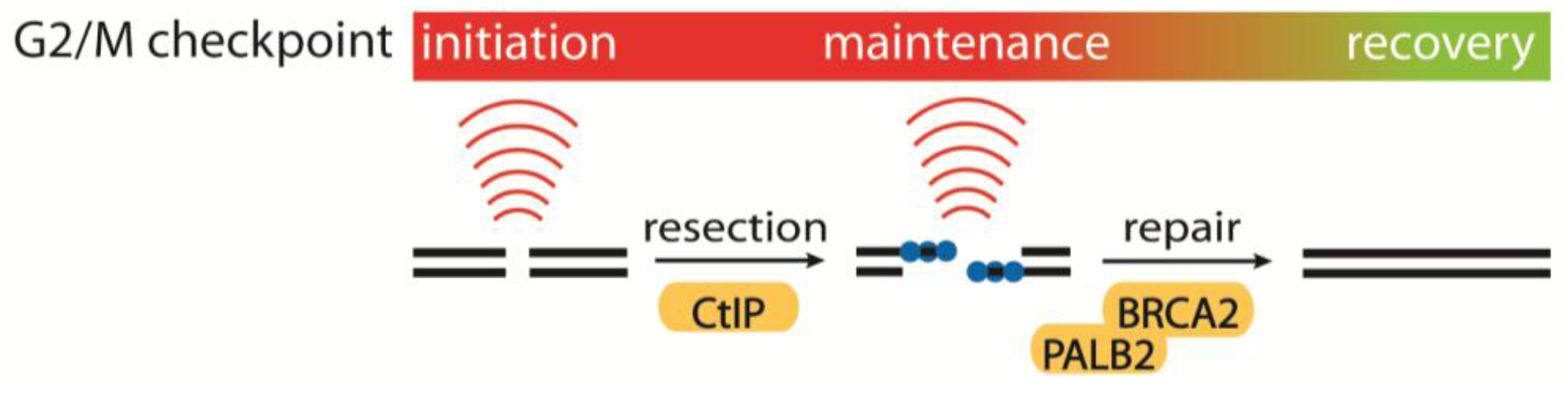 4.1. Initiation, Maintenance and Recovery of the G2/M Checkpoint