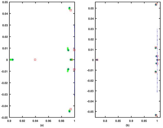 Case II. The eigenvalue structures during the learning process: (a) the longitudinal system; and (b) the lateral system.