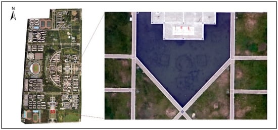 The underlying surface and rainwater pipe network of Zhengzhou University have their own independent rainwater drainage system, which is similar to the microcosm of a city. Therefore, Zhengzhou University is chosen as the flight test area. As shown in Figure 1.