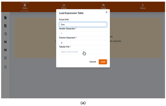 Expression or metabolite data, and additional information about transcripts or metabolites, can be loaded into GXP (see Section 2.1). Alternatively, a previous work-session can be restored using the “Import GXP Database” function in the “Data” menu (see Section 2.1). All data is stored in memory, no data is ever sent via the internet to any backend server. Memory state management has been implemented using the MobX library (version 6.3.7; https://mobx.js.org; access date 11 January 2022).