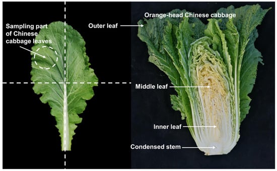 - Zhao, Y.; Yue, Z.; Zhong, X.; Lei, J.; Tao, P.; Li, B. Distribution of primary and secondary metabolites among the leaf layers of headed cabbage (Brassica oleracea var. capitata). Food Chem. 2020, 312, 126028. [Google Scholar] [CrossRef] [PubMed]