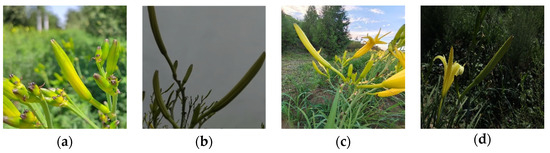 Display of four classes of samples in the daylily dataset. (a) Immature; (b) Pluckable; (c) Flowering; and (d) Other.