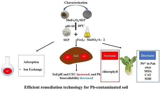 2.7. Application of MnFe2O4/SEP in Pb-Contaminated Soil