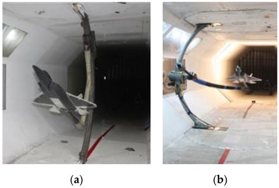 The wind tunnel virtual flight test fills the gap between the subscale model actual test flights and the traditional wind tunnel force measurement test [] and can simulate flight conditions more realistically before the actual test flights, which has a wide background of applications in aerodynamic parameter identification, flight control law verification, and stability evaluation [].