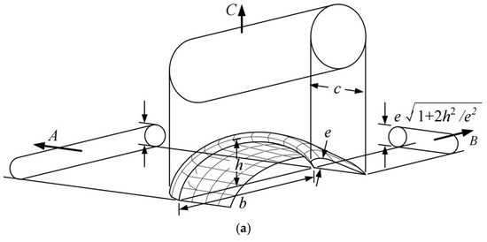 denote the maximum thickness, span, and chord length of the canopy, respectively. The added-mass () and added-inertia () components are modeled based on the equivalent cylindrical volume, as shown in Figure 4. In the canopy frame, the added-mass matrix () and added-inertia matrix () are given by the following: