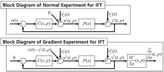 Block diagrams of normal and gradient experiment for iterative feedback tuning.