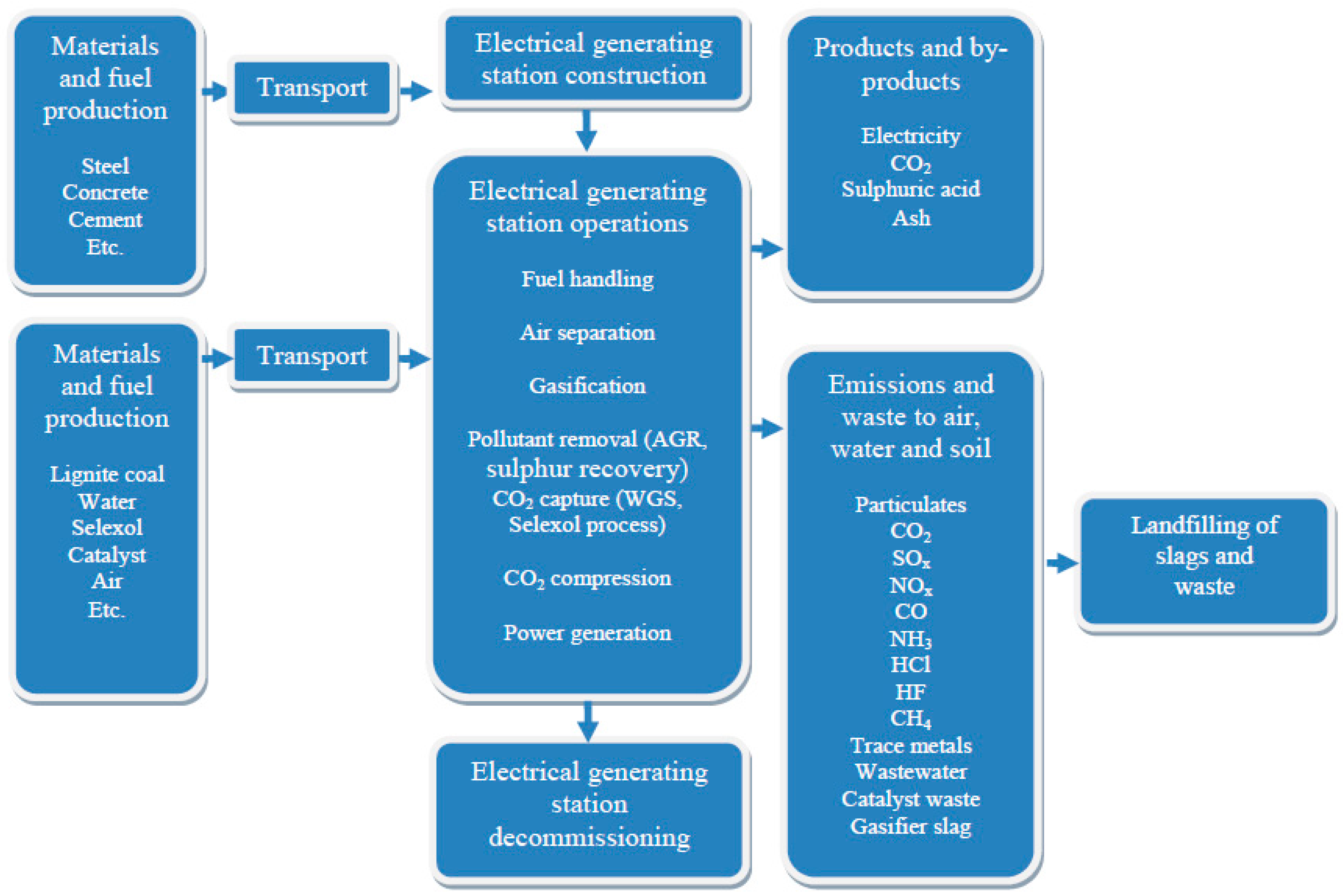 - Pehnt, M.; Henkel, J. Life-cycle assessment of carbon dioxide capture and storage from lignite electrical generating stations. Int. J. Greenh. Gas Control 2009, 3, 49–66. [Google Scholar] [CrossRef]