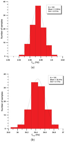 The sensitivity behavior of the filters has been evaluated using the Monte Carlo analysis tool (N = 100 runs) and the derived values of standard deviation of the half-power frequency were Hz for the low-pass filter and Hz for the high-pass filter. The obtained statistical plots for order are provided in Figure 12.
