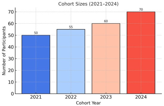 Cohort sizes varied over the four years, with a general increase from 2021 to 2024 (see Figure 2).
