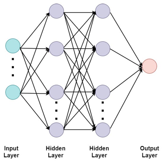 MLP is a feedforward artificial neural network class. It consists of an input layer, one or more hidden layers and an output layer. The hyperparameters of the network are the number of neurons in each layer, the number of layers and the activation function. This model has been applied to media recording [], stock price prediction [], medical [], environmental science [] and engineering [].