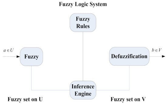 It can be seen from Figure 2 that there are three fuzzy sets of short, medium, and high on the domain U = [0, 30]. This membership function can be used to describe any point on the field, and there are memberships belonging to the three fuzzy sets mentioned above. The value corresponding to the point is called the degree. In Figure 2, the element is included in the fuzzy set of “short”, and its degree is 0.8, and the degree belonging to “medium” is 0.4. On the basis of fuzzy sets, in order to better adapt to the research, some scholars put forward the fuzzy logic system. It can simulate the thinking process of the human brain and use fuzzy sets to describe the characteristics of the knowledge graph so as to deal with the fuzzy uncertainty in the whole system [,]. The basic fuzzy inference framework is shown in Figure 3.