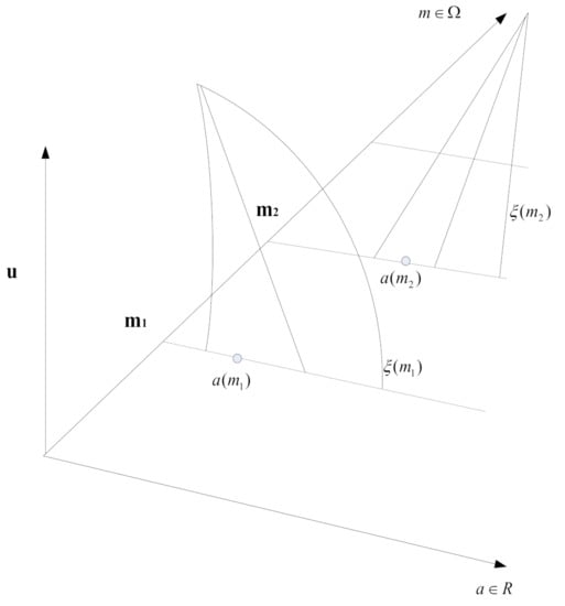 Fuzzy random variable is a kind of random phenomenon that occurs easily and does not have a clear meaning. It is not only a further extension of traditional random variables but also an extension of the concept of random sets. In terms of definition, it can be expressed that it defines a function that can map all possible results of random experiments into fuzzy sets so as to simulate the uncertainty of the coupling between fuzzy and random phases []. The specific definition can be expressed as the following: there is a probability space (A, B, C); let represent I fuzzy variables; then, represents a fuzzy random variable, and , as specifically shown in Figure 4.