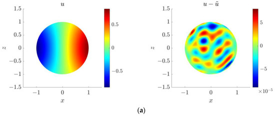 Here, is a column vector of , is a column vector of , is a column vector of and . According to Equation (22), the unknown coefficients in the time step can be achieved based on the solutions of time step as below