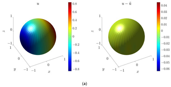 Boundary solution for the 3D parameter identification problem in spherical domain under different discretizations: (a) ; (b) ; (c) .