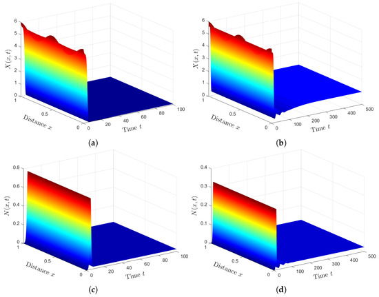 which ensures the boundedness of , and on . From the standard theory for semi-linear parabolic PDEs, we obtain [71]. □