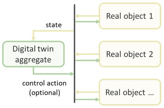 - The aggregate is a combination of digital twin instances. It receives data from many physical objects (Figure 3).