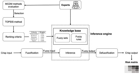 Therefore, this research focuses on identifying and measuring the risks of climate transition that can affect a company in the processed food sector in Colombia; this is achieved by building a risk matrix where the probability of occurrence and impact are evaluated and analysed from a financial perspective in the organisation, as well as the level of risk exposure, using computational techniques and expert judgement. To achieve this objective, 10 MCDM methods and the FL approach are compared, and the one that best fits the analysed problem is selected. We selected a fuzzy method because FL can work with uncertainty and imprecision and solve problems where there are no defined limits or precise values []. This situation occurs in the concept of a risk assessment matrix, due to the uncertainty of climate change.