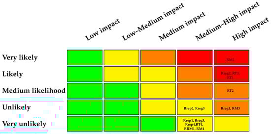 - Market and regulatory risks are the most significant in terms of risk management. In particular, RM2 is the most probable and has the most significant impact.
