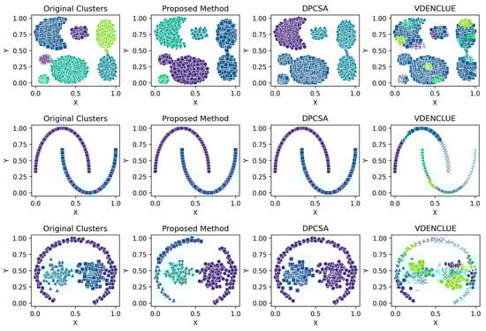 Clustering Results Original DENCLUE vs. Proposed Method—Synthetic Datasets.