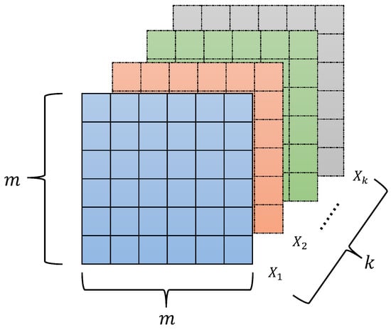 Then, we select the cell , where the edge is stored, as the initial submatrix , where and , and calculate the initial submatrix density. In line with Saha’s work [], we define the submatrix density as follows: