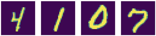 We used four datasets in this experiment: MNIST [], CIFAR10 [], CIFAR100 [], and TinyImagenet []. MNIST consists of 60,000 training images and 10,000 testing images, each 28 × 28 pixels, representing handwritten digits from 0 to 9. Figure 6 shows some examples from this dataset.