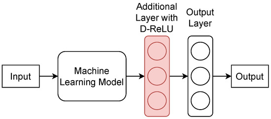 We also added a dense layer before the output layer. Incorporating a dense layer before the output layer is motivated by findings from the experiment conducted in []. The study demonstrated that employing S-ReLU in the last hidden layer yields superior results compared to its placement in earlier layers. This layer’s activation function is D-ReLU for our approach, as shown in Figure 10, while it is a general ReLU for other approaches.