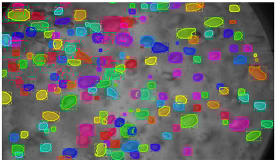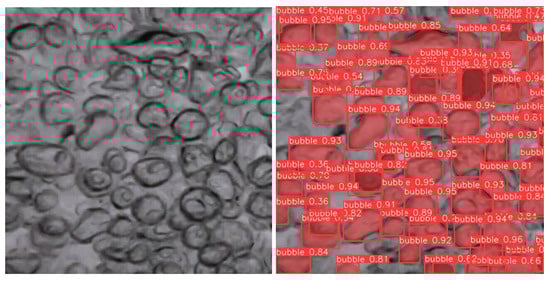 Quantitative analysis of the advantages of YOLO-based methods over traditional techniques can be focused on metrics such as mean Average Precision (mAP) [] to demonstrate the superior accuracy and efficiency of YOLO in detecting and characterizing bubbles. The mAP values obtained from our experiments indicate a high level of precision and recall, showcasing the model’s ability to accurately identify and segment bubbles even in challenging conditions.