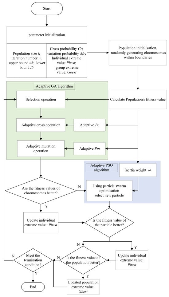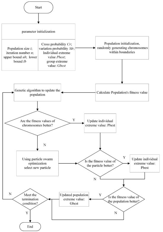 In genetic algorithms, crossover and mutation operations play a pivotal role, mirroring the chromosome crossover and gene mutation seen in biological inheritance. These operations are designed to amplify the diversity of the population as the genetic algorithm progresses through its search process, ultimately aiming to improve the algorithm’s ability to perform a local search. The probabilities of crossover and mutation serve as governing factors dictating the algorithm’s balance between exploration and exploitation, and in this paper, both values are set at 0.8.