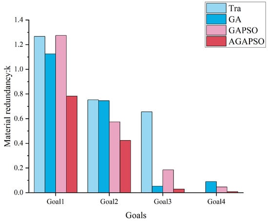 Comparison of the material redundancy ratios of different algorithms for the four objectives.