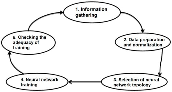 Each of these stages has its own peculiarities and may require additional actions and experiments to achieve the desired result. To summarise, the main stages of a neural network’s construction are shown in Figure 1.