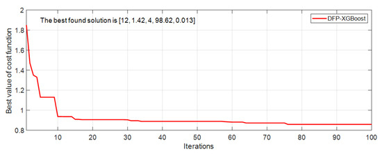 Sophisticated models are capable of explaining the complex mapping relationship between the predictor variables and the response. However, an excessively sophisticated model tends to suffer from overfitting. An overfitted model may achieve a desired goodness of fit in the training phase, but it may perform unsatisfactorily on unseen data samples. To avoid overfitting, the regularization parameters ( and ) should be used. The larger those regularization parameters are, the more restricted the complexity of the model is. This study relies on DFP to automatically search for the most appropriate values of the five hyper-parameters of XGBoost.