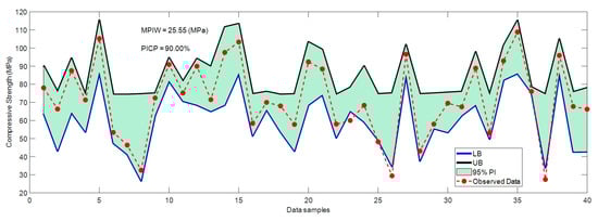 - In addition to prediction accuracy, reliability is also a major concern in CS estimation [,]. Restriction of overestimation is an important task in model building. However, improving the reliability of the estimation has rarely been addressed in the case of HPC. The current work is an attempt to fill this gap in the literature. An asymmetric loss function is utilized in the training phase of the XGBoost regressor to express the bias against overestimations. By doing so, the number of overestimated CS values can be reduced, and the model’s reliability is enhanced accordingly. Additionally, XGBoost-based quantile regression is used to derive the prediction interval of the CS values.