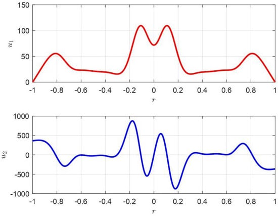 The cubic polynomial satisfies the boundary conditions in (25) that is . Moreover, of the mesh, the subdivision is considered, and collocates at the ends of the sub-interval and the midpoint. Obviously, is continuous at the endpoints of each sub-interval.