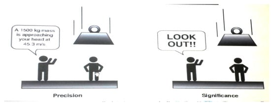 In everyday life, however, people always want to know the truth in order to organize better, or even to protect their lives. Consequently, in such cases the significance of an argument has greater importance than its validity/precision. In Figure 2, retrieved from https://complementarytraining.net/strength-training-categorization/figure-6-precision-vs-significance, the extra precision on the left actually makes things worse for the poor man in danger, who has to spend too much time trying to understand the data and misses the opportunity to take the much needed action of getting out of the way. On the contrary, the rough/fuzzy warning on the right could save his life.