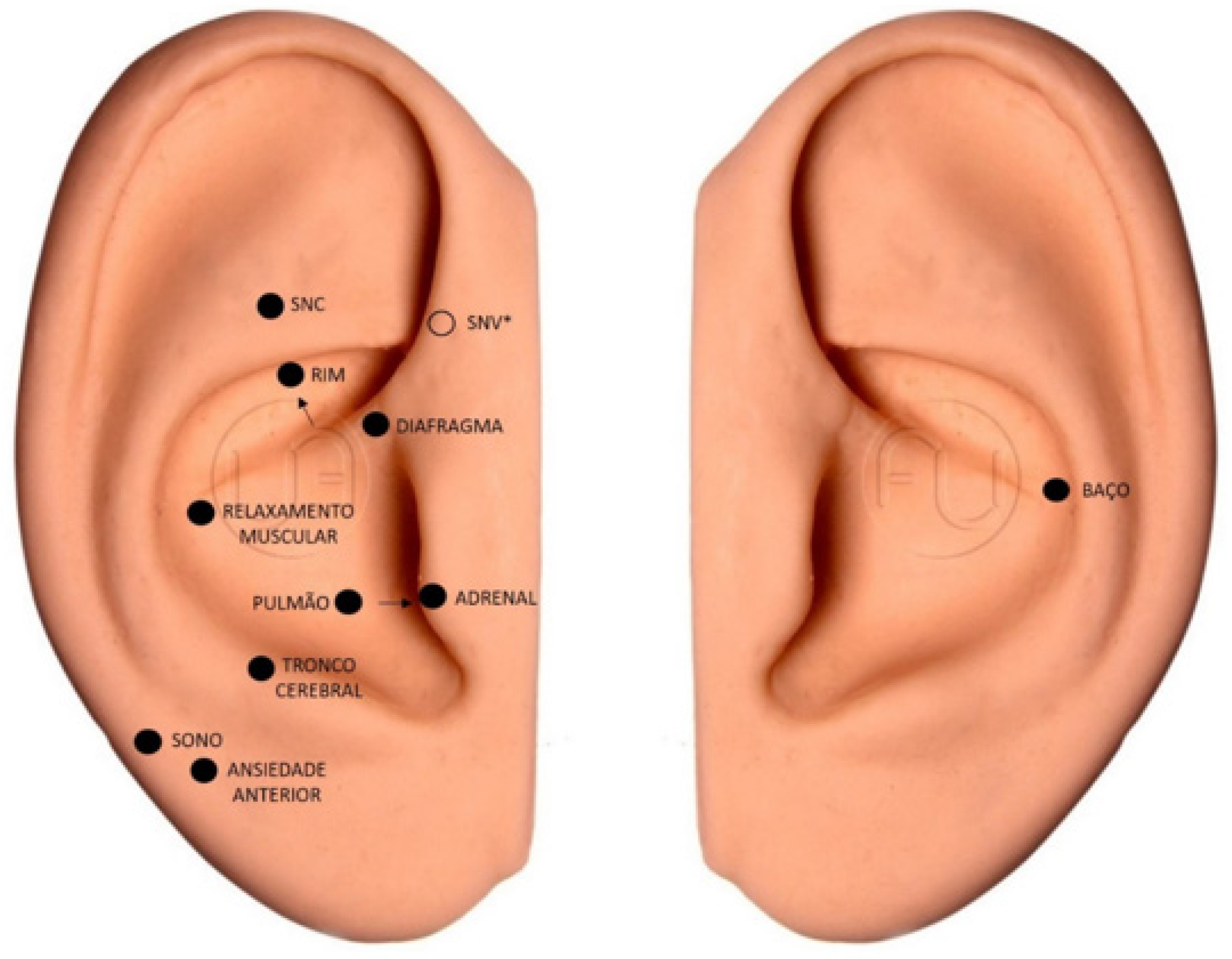- Silvério-Lopes, S.S.; Carneiro-Suliano, L. Atlas de Auriculoterapia de A a Z, 4th ed.; Omnipax: Oslo, Norway, 2020. [Google Scholar]