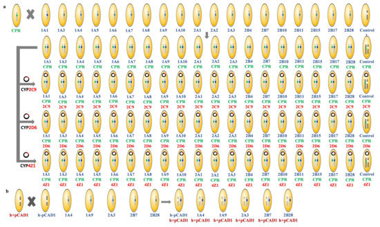 - Durairaj, P.; Fan, L.; Du, W.; Ahmad, S.; Mebrahtu, D.; Sharma, S.; Ashraf, R.A.; Liu, J.; Liu, Q.; Bureik, M. Functional expression and activity screening of all human cytochrome P450 enzymes in fission yeast. FEBS Lett. 2019, 593, 1372–1380. [Google Scholar] [CrossRef]
