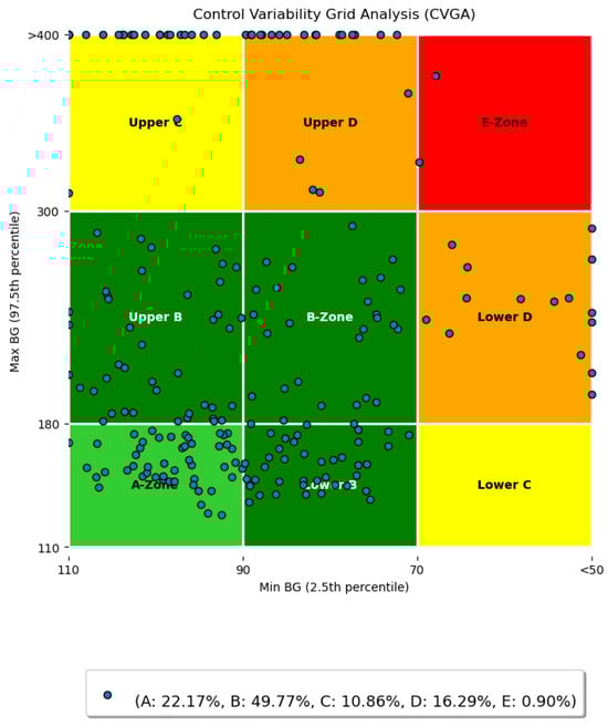 By evaluating the results through the Control Variability Grid Analysis (CVGA) metric, we identified Zone B control actions for a total of seven patients. Notably, patient number 7 showcased the most commendable performance, maintaining a flawless 100% adherence within the target range; see Table 2 from [].