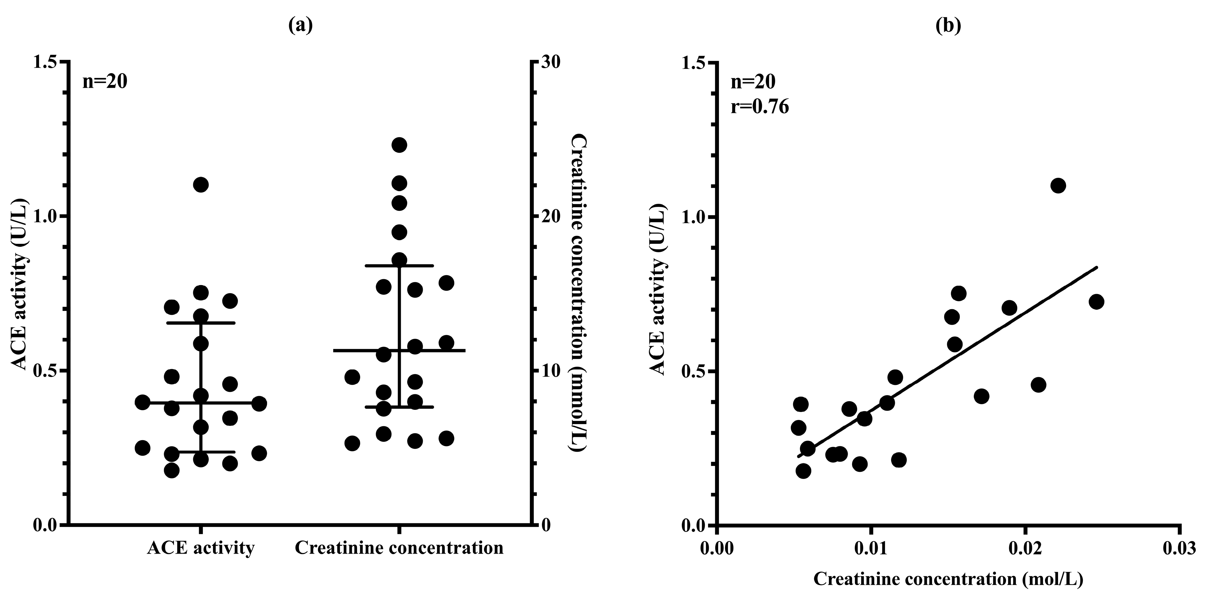 3.6. uACE Activity Correlates Well with Urinary Creatinine Concentration
