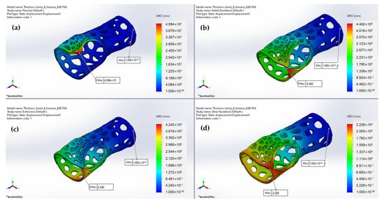 - Cazon, A.; Kelly, S.; Paterson, A.M.; Bibb, R.J.; Campbell, R.I. Analysis and Comparison of Wrist Splint Designs Using the Finite Element Method: Multi-Material Three-Dimensional Printing Compared to Typical Existing Practice with Thermoplastics. Proc. Inst. Mech. Eng. H 2017, 231, 881–897. [Google Scholar] [CrossRef] [PubMed]