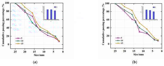 In the equation, dx represents the size of an individual particle, dm refers to the maximum size of the sample fragment, Mt represents the total mass of the sample after crushing, Mx denotes the cumulative mass of the fragments with sizes smaller than dx, and D represents the fractal dimension of the fragment size distribution in the sample.