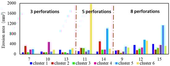 Statistical diagrams of perforation erosion area under different perforation parameters.