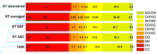 An attempt to model disorder defined directly i.e., by assigning it to particular protons based on the X-ray data (RT direct disorder), failed. The electron densities at both nitrogen atoms, N(7) and, to a much lesser extent, N(1), are poorly reproduced using this model and have led to the unreliable EFG tensor components and resonance frequencies, as in Table 2 and Figure S1c,d. It is, therefore, obvious that the wavefunction obtained by this method cannot be used for further analysis of the non-covalent interactions.