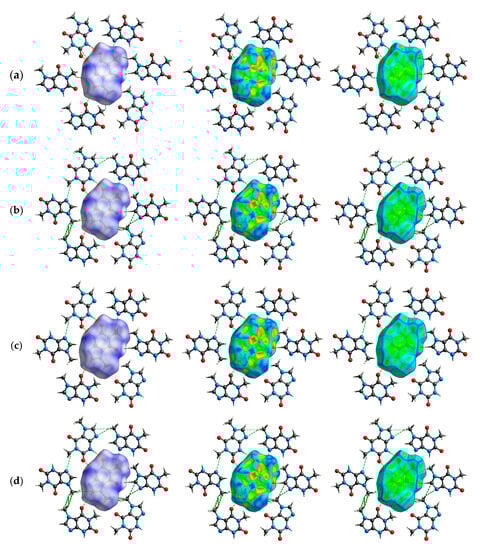 2.5. Exploration of Intermolecular Interaction Patterns—3D Hirshfeld Surface Analysis