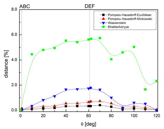 - The Bhattacharayya coefficient [], which is a distance between two probability distributions, as follows: