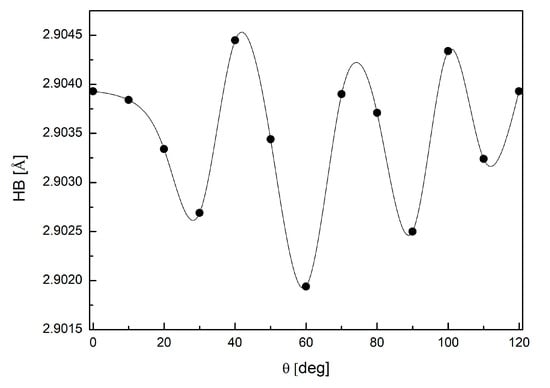 The quantum chemical calculations required for the QTAIM analysis were carried out within the density functional theory (DFT) approach rooted in the Kohn–Sham [] theorem, generalized by Levy []. This approach is an attractive compromise, providing useful accuracy and favorable algorithmic complexity. The Minnesota M062X hybrid meta, a high-nonlocality exchange–correlation functional with a double amount of nonlocal exchange (2X) [], and an all electron split-valence basis set 6-311 + G(d,p), were used for the single molecule and cluster calculations. M062X, which has a 54% HF exchange, gives high values for the systems with non-covalent forces, which is one of the fundamental disadvantages of classical DFT approaches. X-ray crystallography at the usual resolution often fails to directly access the positions of light atoms; thus, the proton positions were corrected (optimized). A complete description of the basics of the cluster technique can be found in our previous papers [,,]. The calculations were performed using a Gaussian 16 rev. C01 [].