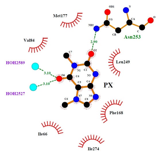 Molecular docking (MD) is a widely used technique in screening of novel therapeutic agents. This technique requires both the knowledge of the ligand structure and a reliable 3D X-ray crystal structure of protein. The MGLTools software (ver 1.5.7) was used to convert the files with these structures to the .pdbqt format. MD was performed using AutoDock [] and AutoDock Vina98Vina []. Two techniques were used to dock a template docking and docking with defined searched space around the active site. The score function being a linear combination of different terms (steric, van der Waals, hydrogen bonding, electrostatic, torsion and sp2-sp2) was used. Based on the scoring function’s estimation of the protein–ligand binding energy, the optimum pose was chosen. The approach for docking the ligands in the protein pocket was identical to that described earlier []. Exploration of protein–ligand hydrophobic interactions was performed using LigPlot+ [,].