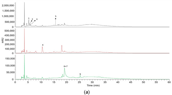 3.1. UHPLC-DAD-ESI-IT-MS Analysis of Phenolic Compounds