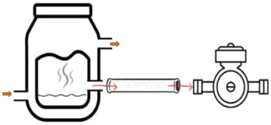 Scheme of the system designed to extract aromatic compounds present in wine sparkling samples onto desorption tubes using a TD method. The red arrow indicates the direction of the intake air.