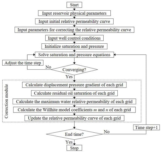 Flowchart of numerical simulation of black oil embedded in oil–water permeability curve correction.